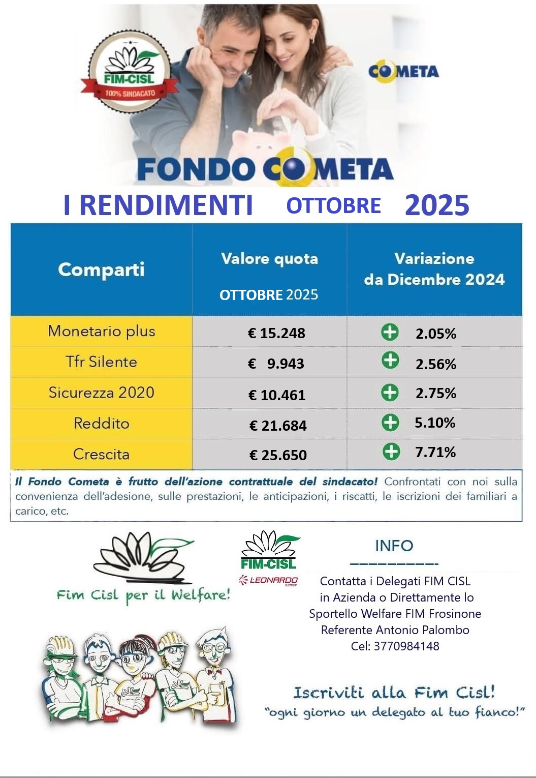 VALORE QUOTA FONDO COMETA MESE OTTOBRE 2025 Ottobre 2025 registra un nuovo mese positivo per il Fondo Cometa, confermando il trend favorevole che ha caratterizzato l’intero anno. È importante sottolineare che non si tratta di un episodio isolato, ma del risultato di una gestione attenta e proattiva del Fondo. Tutti e cinque i comparti hanno conseguito rendimenti positivi, inaugurando il …