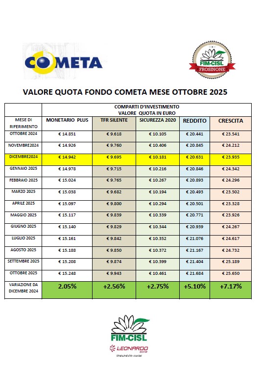 VALORE QUOTA FONDO COMETA MESE OTTOBRE 2025